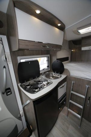 Peu de chose à dire à propos de l’équipement. L’essentiel y est. On apprécie, évidemment, le grand réfrigérateur de 150 litres. Notons que le réservoir d’eaux usées (95 l) est isolé et chauffé. Le combiné Truma C4 suffit à chauffer le petit volume de la cellule.
