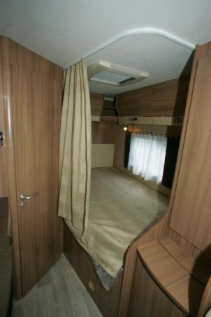Les deux couchages satisferont les occupants. Le lit permanent en long est assez vaste, bien qu’un peu tronqué à ses pieds. Le couchage sous pavillon, même en position basse, n’empêche pas l’usage de la dînette.