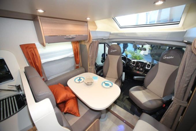 Bien que maxi par sa configuration, le salon de ce Graphite 388 EB n’occupe que le sixième de la surface totale, même pas le quart de la cellule habitable. Mais il est joliment traité et admet sans problème cinq personnes autour de la table. Ce sera bien suffisant car ce profilé Challenger n’est pas destiné à devenir un foyer pour famille nombreuse.