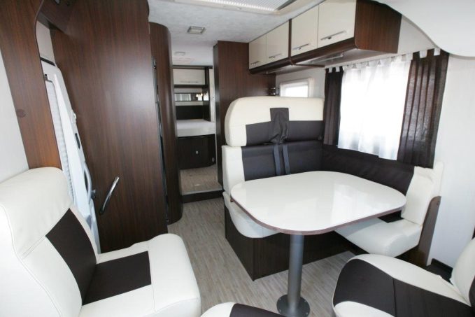Afin de ne pas rater son entrée dans la catégorie des intégraux, la marque espagnole s'est appuyée sur l'expérience du groupe Trigano et de sa division italienne Arca. Il en ressort un camping-car au design extérieur affirmé et à la présentation typée haut de gamme. La sellerie Kenia (cuir beige et marron) associée à un mobilier en bois foncé à des portes laquées claires confère même un style ''nautique'' à bord. Une assise supplémentaire, placée à droite de l'entrée, permet de se retrouver à cinq sans problème dans le salon.