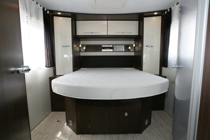 La version Aristeo 690 se démarque des 640 (lit transversal) et 660 (lits jumeaux) par son lit central sur soute (190 x 140 cm). Il facilite au maximum l'accès sur les côtés tout en proposant un rangement supplémentaire au pied (par le dessus en soulevant le sommier ou en façade par une grande porte). Le lit de pavillon affiche les mêmes cotes généreuses. Il reçoit lui aussi un épais matelas en mousse reposant sur un sommier à lattes. Une petite échelle rend les montées et descentes aisées, tandis que les manœuvres de mise en place se réalisent sans efforts. L'éclairage, enfin, est assuré par de petits spots à leds puissants et économes.
