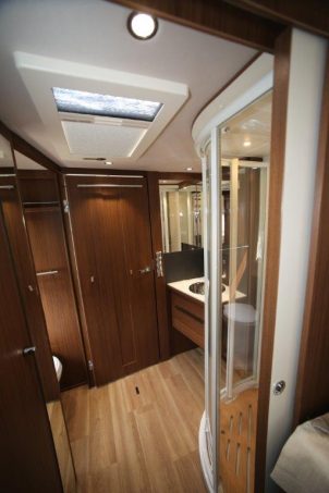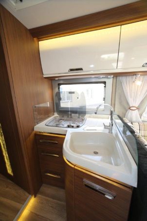Le grand standing qui vous attend à bord est un élément majeur des Arto. En particulier dans le 88 E, dont le salon mérite parfaitement sont qualificatif de Maxi. La cuisine, au design très soigné, fourmille de rangements. Le plan de travail en résine, d’une grande élégance, est aussi très facile à entretenir. Les alignements d’éclairages directs et indirects réchauffent le tout. L’autonomie en eau est réduite à 20 litres en roulant. Il est vrai que la charge utile n’est pas si élevée que cela pour un véhicule de cette catégorie.