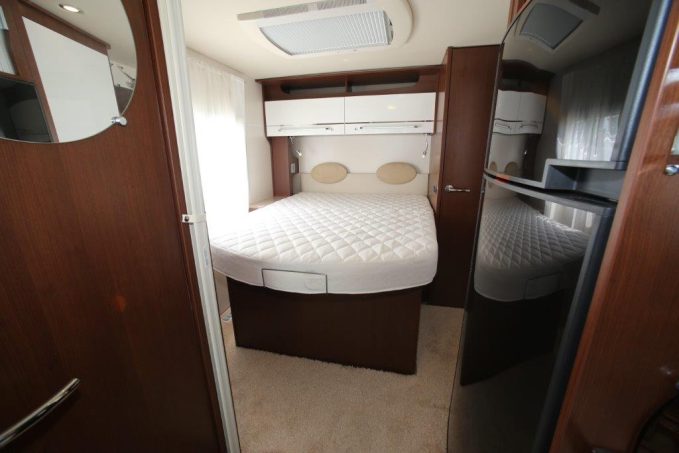 Le programme "Light and Confort" est également particulièrement appréciable dans la chambre et les modules de toilette où une belle lumière à leds bleutée apaise l’ambiance. Le lit décalé est assez classique mais le matelas est à mémoire de forme. Ses abords sont entièrement plats grâce au double plancher technique. C’est aussi ici que l’on apprécie le plus la présence d’une mousse isolante au plafond garante d’une meilleure tranquillité pendant la nuit.