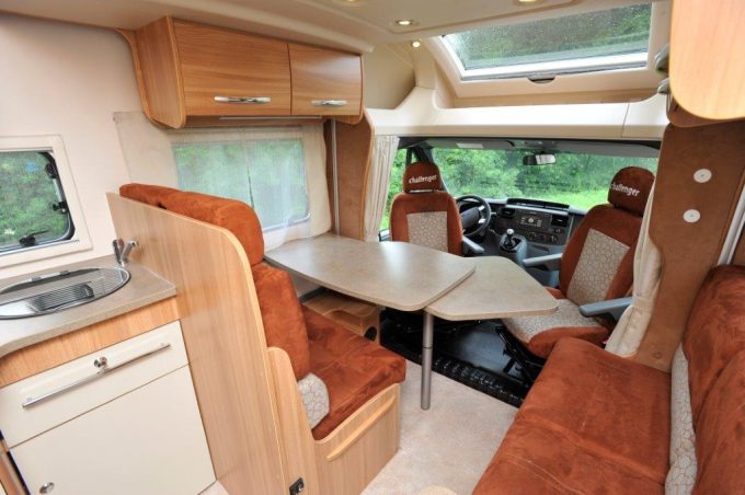 Pour améliorer l’autonomie en gaz, Challenger a choisi d’installer un chauffage à carburant. Idéal pour les voyages hors de France. La production d’eau chaude, elle, est obtenue par un boiler. En cuisine, le réfrigérateur de 145 litres suffira à conserver les denrées pour une famille de cinq.