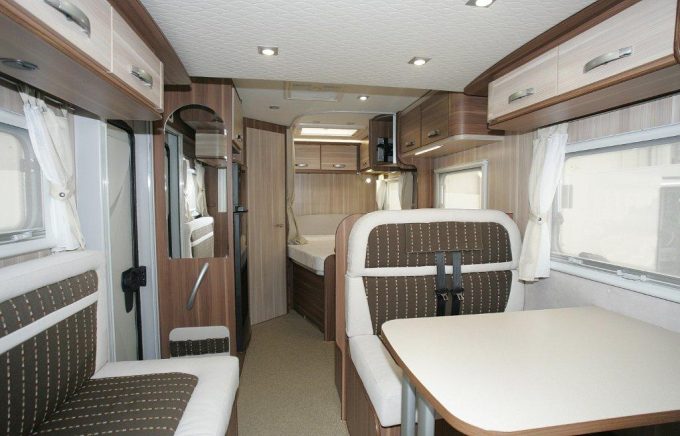 Le salon, sans défaut apparent, est d’une belle… simplicité. Les éclairages diurne et nocturne sont satisfaisants, les assises accueillantes. Le lit haut (195 x 108 cm), bien plaqué contre le pavillon, n’affecte pas sur le volume vital, même un occupant de grande taille pourra séjourner sans problème dans le salon. La satisfaction est complète lorsqu’on abaisse ce couchage : aucun autre effort à fournir que celui d’appuyer sur un bouton.