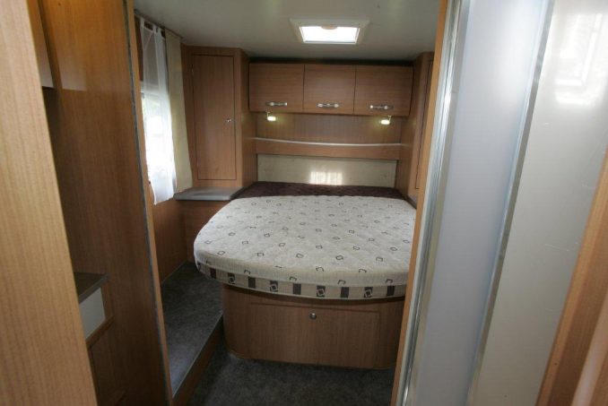 Le chauffage utilisable en roulant, comme sur tous les systèmes à chauffage à carburant du groupe Trigano, est un vrai plus. L’éclairage 100 % leds est un autre standard très appréciable. Les 127 l d’eau propre homologués sont conformes à ce que l’on peut espérer d’un véhicule affichant 550 kg de charge utile. Côté nuit, la chambre relativement simple du Flash 28 offre un grand avantage : une bonne voie de circulation entre le pied du lit et les modules de toilette. Il aurait pu en être autrement dans une cellule de 7,25 m. Le mobilier est assez simple, mais on apprécie l’aménagement des rangements sous le lit avec l’accès à la soute. A noter, également, le tiroir de lingère en façade.