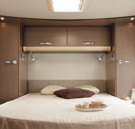 Le lit central est de bonne qualité. Idem pour celui de pavillon. Mais l’échelle d’accès est en option. Les stores plissés d’occultation du pare-brise et des vitres sont également optionnels.