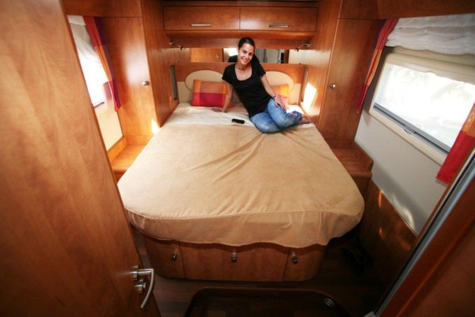 En termes d’agencement, la partie arrière du véhicule ne change pas beaucoup puisqu’elle n’a pas bénéficié de la remise à niveau du plancher à l’entrée de la douche comme sur les modèles 4.7 et 4.9. On apprécie, en revanche, les dimensions du lit (195 x 145 cm). Le garage, à présent revêtu d’un matériau antiglisse résistant, peut passer, en option, d’une hauteur de 100 à 110 cm.