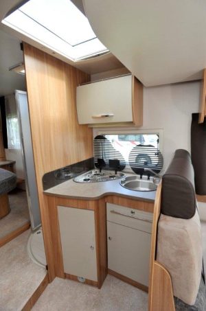 Ce grand profilé adopte une implantation très appréciée avec lit central (138 x 189 cm) et lit de pavillon (140/120 cm mini x 191 cm). Son intérieur est cossu et confortable : des galons de leds courent sous les placards de pavillon, offrant une agréable ambiance lumineuse contemporaine. L’habitabilité et le confort du salon sont exemplaires, tandis que le lit de pavillon se fait complètement oublié lorsqu’il est remonté, la hauteur intérieure étant suffisante pour qu’on ne soit pas obligé de pencher la tête.