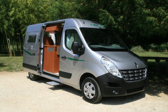 Ce petit fourgon affiche sans complexe sa vocation puisqu’il est destiné à l’usage exclusif d’un couple sans enfants. En vérité, son implantation n’est pas une absolue nouveauté dans la mesure où elle avait été prévue à l’origine pour le Fiat Ducato. Elle retrouve une nouvelle jeunesse sur le Renault Master moyen avec, dans sa partie arrière, un salon en U transformable en couchage double. A l’avant, une table montée sur pied multi position entre les sièges de cabine permet notamment de prendre le petit déjeuner sans avoir à défaire le lit. Aménagé le long de la paroi latérale droite, le bloc-cuisine est compact (combiné inox rassemblant évier et réchaud 2 feux) mais complet puisqu’il est équipé d’une hotte aspirante.