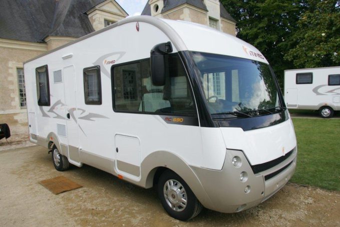 Il était temps de rectifier le tir et l’ancien MB 690 s’est mué en MC 690. Souvenons-nous, le petit MB 690 avait deux défauts : une cuisine droite contre la paroi de la porte d’entrée et une occultation très moyenne de la chambre. C’est fini car, en déportant la cuisine sur la paroi opposée, Itinéo la transforme en L avec un vrai plan de travail. Parallèlement, on gagne entre le montant de la banquette et le meuble du grand réfrigérateur une séparation haute naturelle, qu’un rideau à lattes peut maintenant clore proprement. Au passage, le wc est rejeté en position postérieure latérale derrière la douche, ce qui est le petit point faible du MC 690. Mais pour le reste tout est mieux, y compris le salon qui s’offre deux nouvelles banquettes en vis-à-vis. Bien à l’étape, moins pratique pour la route.