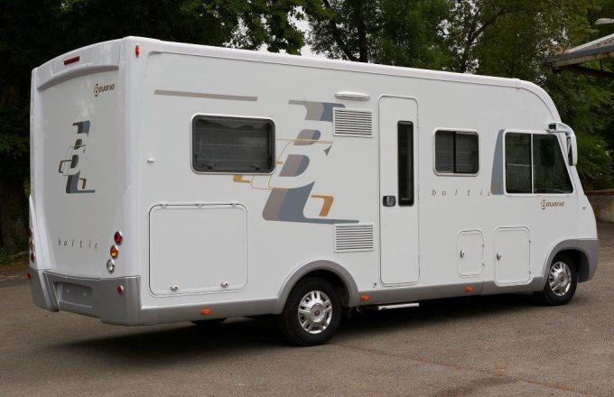 Revenons sur une implantation qui fut, en son temps, une valeur sûre. Celle offrant un maxi salon, une cuisine en L faisant face au réfrigérateur, un lit en long (dit à la française) et une salle d’eau longitudinale avec douche séparée. Ce plan est celui de l’intégral Baltic I 690 LP. Cette disposition s’avère particulièrement attrayante pour un usage en couple. Les personnes désirant faire lit à part profiteront l’une et l’autre du lit permanent et du couchage de pavillon.