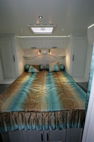 Un intégral Notin sur Mercedes + un lit central + un lit de pavillon en option + un permis poids lourd (ou une équivalence type permis B d’avant 1975) + 124 600 € = le paradis sur quatre roues. Dans le détail, l’Atlanta offre aussi une grande soute g