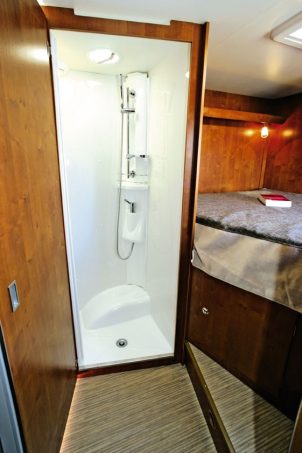 Modèle de la jeune Série 6 (la gamme économique de Rapido), le 643 est un charmant profilé. Sa disposition intérieure est idéale pour voyager en couple. Nous avons particulièrement aimé la vaste salle d’eau avec douche indépendante, rare dans une cellule de petit gabarit. Le mobilier employé procure une touche plus jeune à l’ambiance. On retiendra aussi le prix : le 643 reste largement en dessous des 50 000 €. Il bénéficie toutefois de la qualité de fabrication Rapido (essai complet dans CCM n° 215)