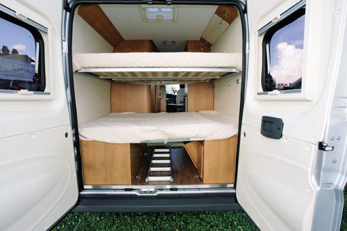 Si tous les fourgons aménagés sont conçus pour vivre la grande aventure en camping-car (ils sont discrets et passent à peu près partout), ce Roller Team est sans doute, de par son nom (Livingstone), encore plus adapté pour se lancer dans des voyages au long cours. Avec le Livingstone 5, vous pourrez partir en famille grâce à la présence de deux grands lits superposés. Les couchages sont facilement démontables, ce qui rend le Livingstone 5 parfaitement modulable : camping-car ou utilitaire.