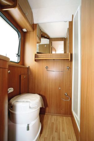 L’Europeo 97/P n’est pas une nouveauté en soi, ce profilé ayant vu le jour l’an passé. Son implantation est, il est vrai, très en vogue : maxi salon cinq places, cuisine en L, lit en long et salle d’eau à grande douche séparée en bout arrière. Ce sch