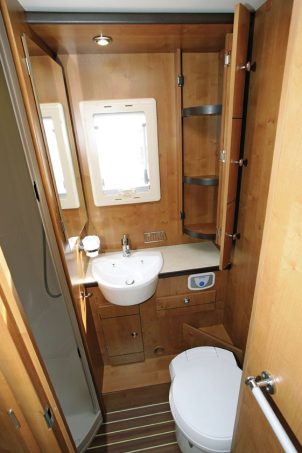 Les profilés de la série 7, dont l'intitulé comprend trois chiffres à la suite du 7, correspondent à ceux construits sur un Alko spécialement fabriqué pour Rapido. Il s’agit d’une base non surbaissée, mais allégée, à roues arrière indépendantes et voie large. Autre intérêt de l’Alko : l’empattement long. De ces caractéristiques, le 7083 tire plusieurs avantages : une excellente tenue de route, une charge résiduelle importante, etc. Intérieurement, le 7083 bénéficie de tout le savoir-faire Rapido. Le mobilier est cossu, les assises confortables, le lit douillet et la salle d’eau ergonomique.