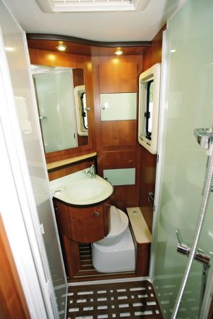 Après avoir inventé, le concept du lit positionné en oblique pour son intégral poids lourd (9009 dFH), Rapido renouvelle l’exercice sur un modèle VL base Mercedes. Le 909 M est un intégral de prestige. On craque évidemment pour sa chambre élégante et confortable. Comme pour tous les Rapido, la liste des équipements de série paraît infinie. Le 909 M est également disponible en version poids lourd pour gagner une place carte grise et de la charge utile, bien maigre, il est vrai, en VL.