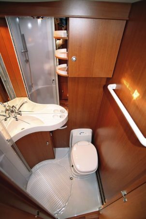 Le 69 L fait partie des six modèles de moins de 3 500 kg de la gamme Arto destinés à rendre accessible la qualité Niesmann + Bischoff à la clientèle VL. Il bénéfice du nouveau revêtement de plancher en lames larges stratifiées façon parquet, et d’une déco plus claire, donnant à l’ensemble le style yachting recherché par le constructeur. La table conserve son système de rallonge particulièrement facile à manipuler. Les couchages sont composés d’un lit transversal arrière et d’un lit escamotable au-dessus de la cabine.