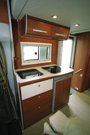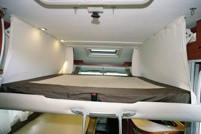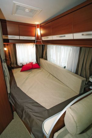 McLouis fait son entrée sur le segment des profilés à lit de pavillon avec trois modèles MC4. Le constructeur italien s’est fort bien tiré, comme le prouve le MC4 62. Le plan n’a rien d’original (dînette classique et lit à la française). Mais il est agréablement décliné, avec un mobilier bicolore très plaisant, une dînette facile à vivre et une belle salle d’eau. Sachant que le MC4 62, tout équipé, reste sous la barre des 42 000 €, inutile de préciser qu’il va faire un malheur.