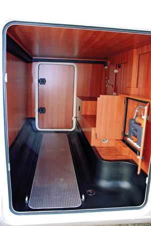 Capucine familiale intégrant un lit transversal arrière, un lit de capucine et un lit de dînette, le modèle X 710 peut accueillir aisément cinq personnes durant la nuit. Mais, si l’on doit voyager à cinq, il faut savoir qu’une des cinq places route, homologuées et inscrites sur la carte grise, se trouve dos à la route contre une paroi sans fenêtre. Parmi les points forts de ce modèle, on appréciera sa soute garage à volume variable, ainsi que le système de porte permettant de réunir le cabinet de toilette et la douche pour former une vaste salle d’eau.