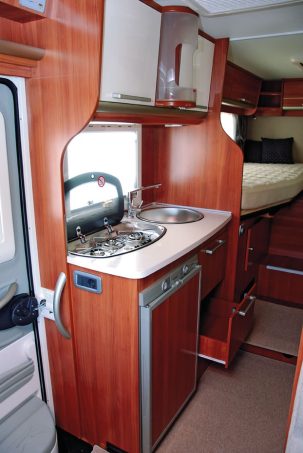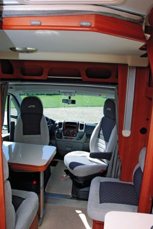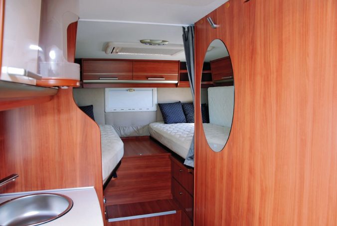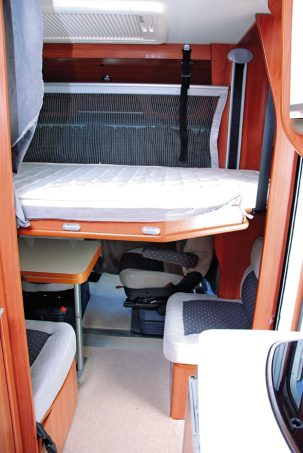 Ce profilé se caractérise à la fois par sa chambre arrière à lits jumeaux et par sa soute garage en mesure d’accueillir un scooter ou deux vélos. Cette implantation n’est pas encore très populaire en France, mais elle est d’autant plus intéressante que les lits jumeaux (appréciables par exemple lors des déplacements entre copains) peuvent être convertis en un seul grand lit, très prisé pour les voyages en couple. L’autre intérêt de ce modèle réside dans le choix des options proposées (dînette simple ou en L, lit de pavillon central motorisé) qui permet quasiment de commander un aménagement à la carte.