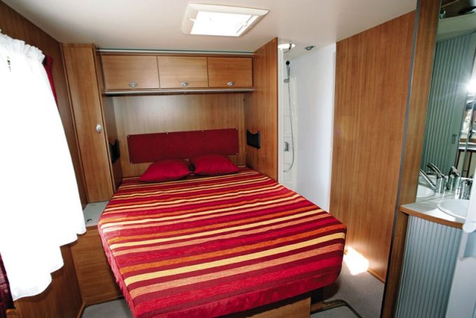 Le i 790 est un profilé de moins de 7 mètres avec lit central arrière, affiché à moins de 40 000 €. Cette disposition privilégie les deux pôles de vie que sont la chambre et le salon. En revanche, la salle d’eau, la cuisine et les rangements doivent