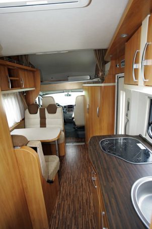 Les voyages autour du monde en camping-car sont suffisamment fréquents pour que cette capucine intéresse une frange de la population camping-cariste. Transformer par le préparateur Dangel, la Camp Cross Over peut emprunter à peu près toutes les voies grâce à sa transmission intégrale. L’intérieur de cette capucine ne change pas par rapport à un modèle standard : mêmes mobilier et équipements, confort identique. La Camp 534 dispose de deux couchettes superposées transversales, d’une dînette classique et d’une grande cuisine. Banal, mais efficace !