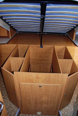 Voilà un tout nouveau modèle haut de gamme qui s’inscrit tout à fait dans la tendance actuelle en offrant un grand lit de milieu à l’arrière, une cuisine centrale en L ainsi qu’un grand salon avec banquette en L. Ce profilé marquant une rupture avec le style habituel de Fleurette ne déroge pas pour autant aux critères de qualité propre à la marque. Son seul défaut est l’accès aux côtés du lit qui s’avère un peu juste. Il suffirait de diminuer la hauteur du coffre qui est en dessous pour y remédier.