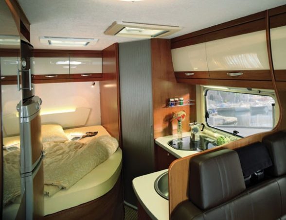 Reconnaissable entre tous les autres modèles Terrestra, par sa carrosserie totalement blanche, voila un profilé fabriqué en série limitée uniquement pour la France. Bien qu’il affiche une implantation très classique avec lit longitudinal à la française, c’est un modèle qui fait preuve d’originalité avec son mobilier bi-ton mariant élégamment bois et acrylique. Petit argument pour convaincre ceux qui hésitent, il est le seul de la gamme à intégrer dans l’équipement de série une télé à écran plat.