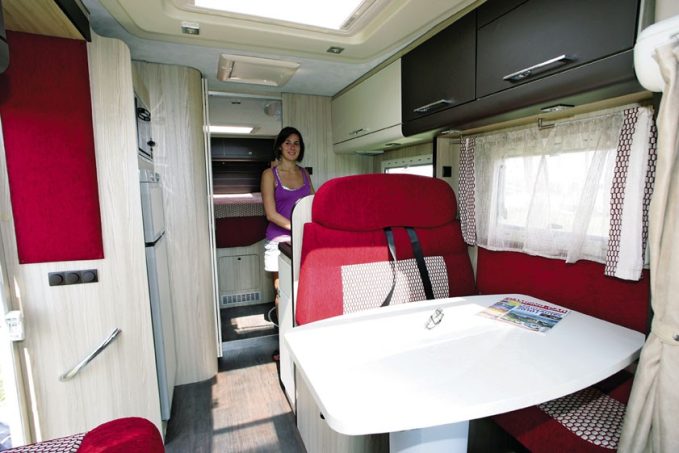 C.I. s’était déjà essayé à l’exercice du profilé à lit central. La précédente version du Riviera Elite péchait par quelques petits défauts. Ils sont corrigés sur la nouvelle génération. Désormais, les occupants disposent d’un vrai et confortable maxi salon cinq places. La cuisine profite d’accessoires complémentaires (comme le four). La salle d’eau est formée de deux compartiments distincts, avec une vaste cabine de douche au receveur recouvert d’un caillebotis. Dans la chambre, le lit central surélevé est accessible par deux escaliers latéraux. Le matelas en mousse repose sur un sommier à lattes.