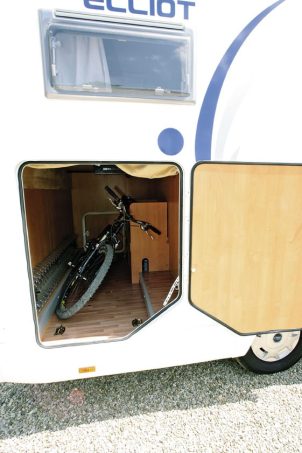 Ce n’est pas parce que l’on est petit que l’on doit manquer d’audace. C.I. s’est sans doute inspiré de cette philosophie pour créer son Elliot garage KP. Ce profilé compact mérite toute notre attention, tant il est plaisant. Outre son style avenant, il offre un intérieur réussi en tous points. Les futurs propriétaires le choisiront pour son grand et confortable lit qui monte ou descend sur un garage (dont le volume est par conséquent variable). Cette possibilité était jusqu’à présent réservée aux camping-cars haut de gamme.