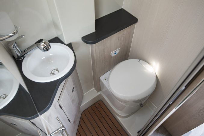 Juste en face, on trouve la salle d’eau qui se ferme par un rideau à lamelles coulissant. Cette salle d’eau est équipée d’un WC, un lavabo fixe et d’une douche. Vient le changement avec le Master Van XS : la chambre. En effet, contrairement à ce dernier, le Master Van Duo est aménagé à l’arrière avec des lits jumeaux. Question dimensions, l’un mesurera 187 cm de l’un et 192 cm pour l’autre. Notez que les deux couchages peuvent être réunis à l’aide d’un cousin central pour faire un seul grand lit.