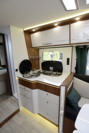 Cette fluidité permet également un accès aisé au lit de pavillon. En qualité d’intégral, ce G740 FC bénéficie d’un couchage double positionné