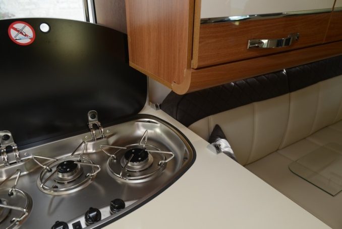 La nouvelle casquette de toit des Magister, plus aérodynamique, s’inspire de celle des Migrateur. Elle améliore le style et les consommations, mais aussi l’écoulement de l’eau (nettoyage plus facile). Le pack Metallic Edition (1 335 €), visible sur notre modèle d’essai, permet de bénéficier d’une cabine de couleur gris métallisé, d’un éclairage diurne à LED (incorporé dans les phares), d’une calandre noire et de poignées de portes “ton carrosserie”. Notez que l’équipement d’origine comprend un réfrigérateur d’une contenance de 150 l (avec congélateur séparé), une hotte aspirante électronique et une climatisation manuelle en cabine.