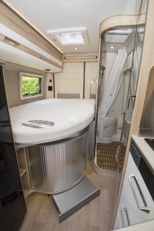 Le 742 n’est proposé qu’en édition spéciale Limited et, de ce fait, inclut le pack Confort+ et le sky roof, une présentation extérieure léchée, la motorisation 140 ch et les jantes alliage. A 53 900 €, on serait presque tenté de parler de bonne affaire. Malgré l’absence de véritable soute, les rangements ne manquent pas (grands placards sous le lit…). On pourra regretter un lit principal à la largeur limitée.