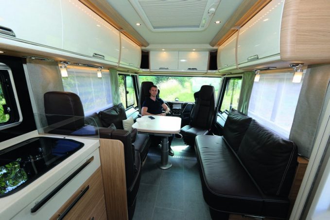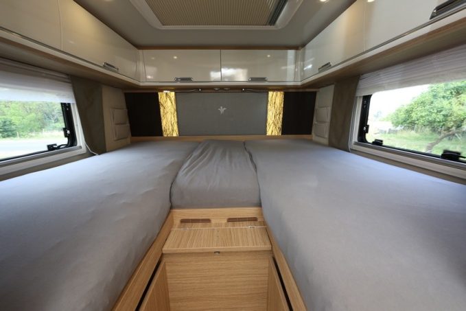 Dans ce 920 LW, vous découvrirez tout le raffinement d’un camping-car grand luxe avec un immense salon et ses banquettes latérales en vis-à-vis, moelleuses, sur lesquelles il fait bon s’asseoir, voire s’allonger le temps d’une petite sieste. Une position qui vous permettra de profiter pleinement de l’écran géant installé dans l’entrée, sur le nouveau dispositif d’accrochage conçu pour 2020 (en option !). Pour la capacité d’accueil nocturne, l’acquéreur a le choix entre deux ou quatre places.image