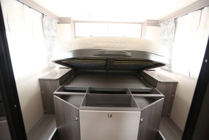 L’équipement de base du V65 GQ Optima Ontour Edition est très complet : jantes alliages 16 pouces, rétroviseurs électriques, ESP, airbag conducteur et passager, régulateur de vitesse, clim’ cabine, système coulissant pour les bouteilles de gaz, chauffage Truma C6 avec panneau de commande Combi CP Plus, GPS, télévision et son antenne… Une belle liste d’une valeur de 8 100 €. Ajoutons également la mise hors gel des réservoirs eau propre et eaux usées, ce qui autorise un usage du véhicule en toutes saisons.