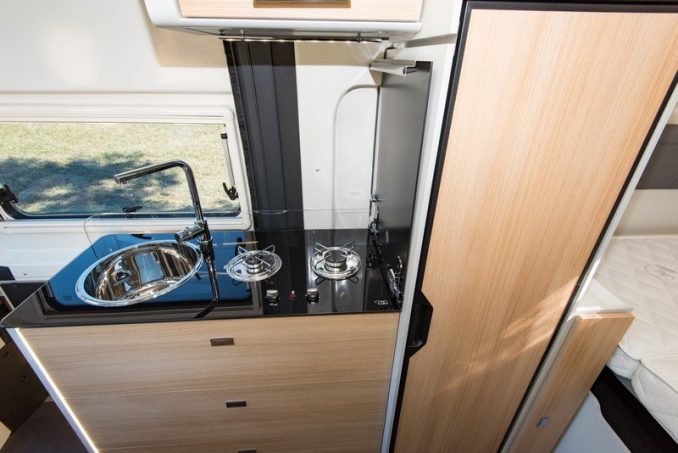 Comme son appellation le laisse penser, le Leader Camp reste “l’un des leaders” pour Font Vendôme en matière de ventes, cette saison. Il faut dire que son pouvoir de séduction s’est accru par une optimisation de l’agencement avec notamment une salle d’eau modulable baptisée TB Concept. Font Vendôme ne s’est pour autant pas endormie sur ses acquis, et ce Leader Camp 2021 revoit certains postes afin de répondre aux demandes des distributeurs et des clients. En effet, le poste cuisine a été revu avec un robinet moins haut de 4 cm et surtout un positionnement plus central. Un nouveau frigo de 138 l à compression dont la profondeur a réussi à être contenue. Conséquence, un gain dans le couloir de près de 8,5 cm de largeur.