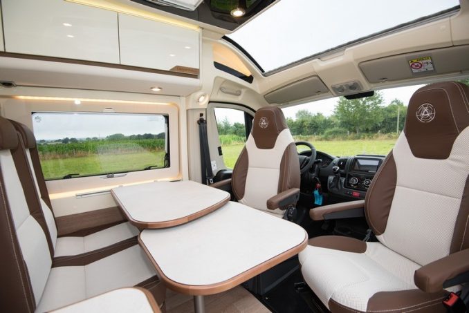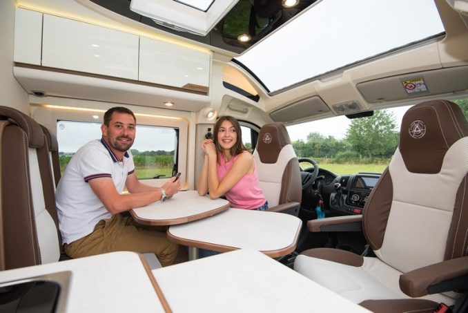 Le Magellan 746 nous est bien connu et s’il adopte quelques nouveautés, en partie jour, nous retrouvons l’implantation classique : dînette avec banquette face route et table à rallonge rotative, sièges de cabine pivotants et meuble de cuisine avec réchaud deux feux, et extension de plan de travail rabattable à l’entrée. Dans son prolongement, le réfrigérateur affiche une contenance de 130 litres. Cette finition Limited avec sky roof, dorénavant seule disponible sur ce modèle, apporte une luminosité agréable dans le salon.