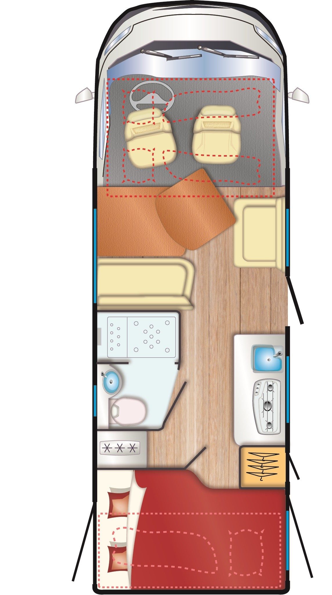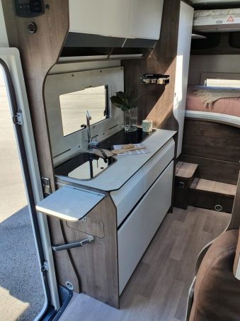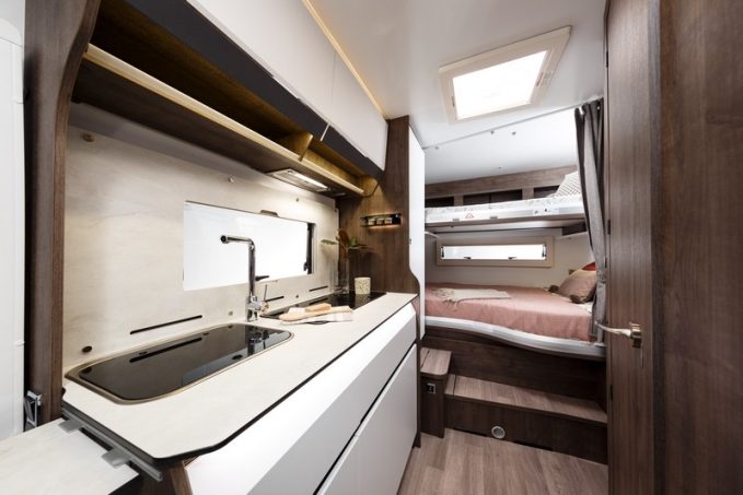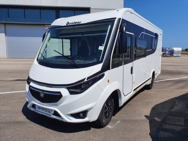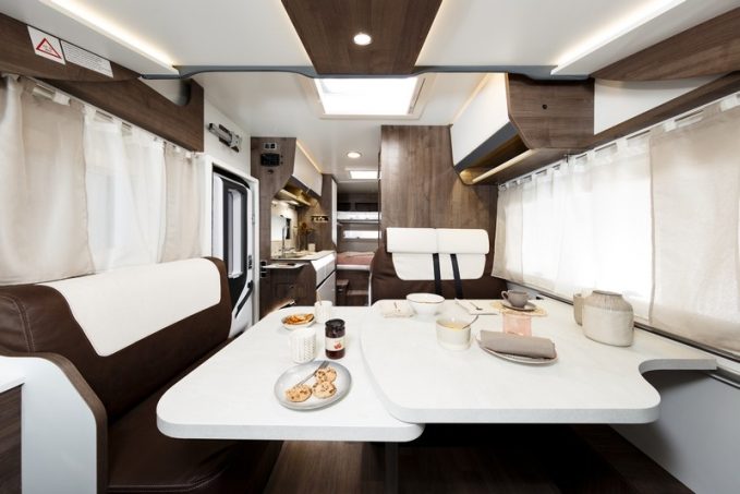 L’an passé, la série Amphitryon faisait une apparition remarquée avec de belles ambitions, dont un intégral de fabrication 100 % espagnole – délaissant ainsi la plateforme commune avec CI et Roller Team. Le constructeur a donc repensé totalement la face avant pour offrir un design unique à l’Amphitryon 940, dernier-né de la gamme. Ce véhicule arbore un look novateur avec une calandre très angulaire. Il se distingue des trois autres par son gabarit puisqu’il est le seul à être sous le seuil des 7 m de long. Ce “petit” véhicule offre malgré tout 5 couchages quasi-permanents.