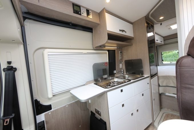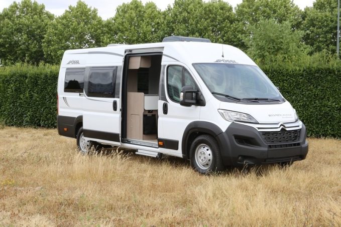 Avec la suppression des deux bonbonnes de gaz de 13 kg, associée au montage d’un combiné chauffage/eau chaude à carburant de 4 000 W, les réchauds ne sont plus alimentés que par une bouteille de 2,8 kg (dissimulée sous le bloc-cuisine). Les placards arrière de pavillon perdent un peu de volume de rangement. Une penderie prend place quant à elle côté cuisine, sous le réfrigérateur à compression. Pössl peut livrer ce modèle sur Citroën Jumper ou Fiat Ducato avec une motorisation de base délivrant 140 ch.
