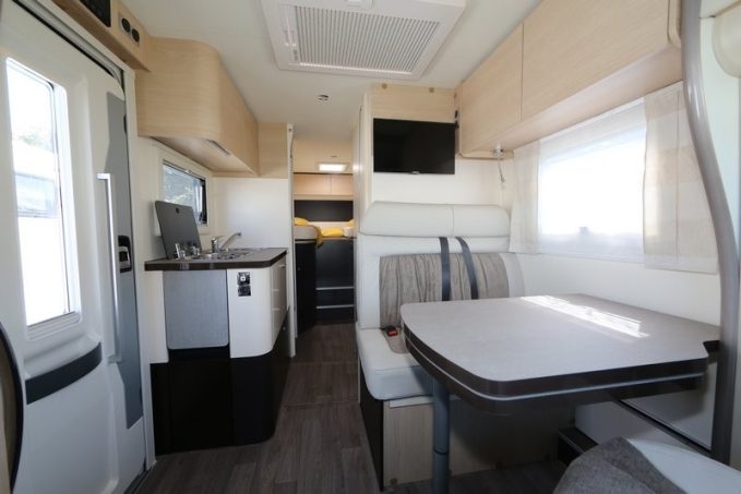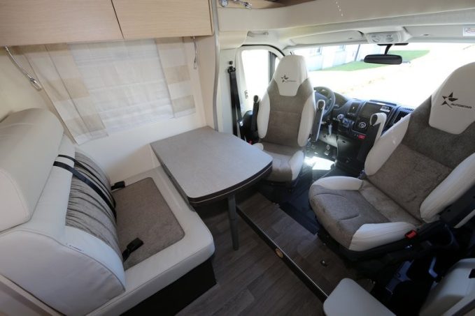 La porte d’entrée extra-large facilite la montée à bord qui se fait après avoir déplié le marchepied électrique. On retiendra aussi le réemploi du tiroir coulissant, développé il y a fort longtemps par Autostar pour ses coffres à gaz. Ce système -abandonné à cause de son poids- revient donc sur les profilés compacts, facilitant les remplacements de bouteilles. Le réservoir d’eau propre peut recevoir 120 litres de liquide au bivouac. Mais au roulage, il faudra se contenter de 20 l (selon l’homologation). La cuve de récupération des eaux usées affiche, quant à elle, 100 litres. Chauffage et eau chaude sont produits par le Combi 4 de chez Truma.