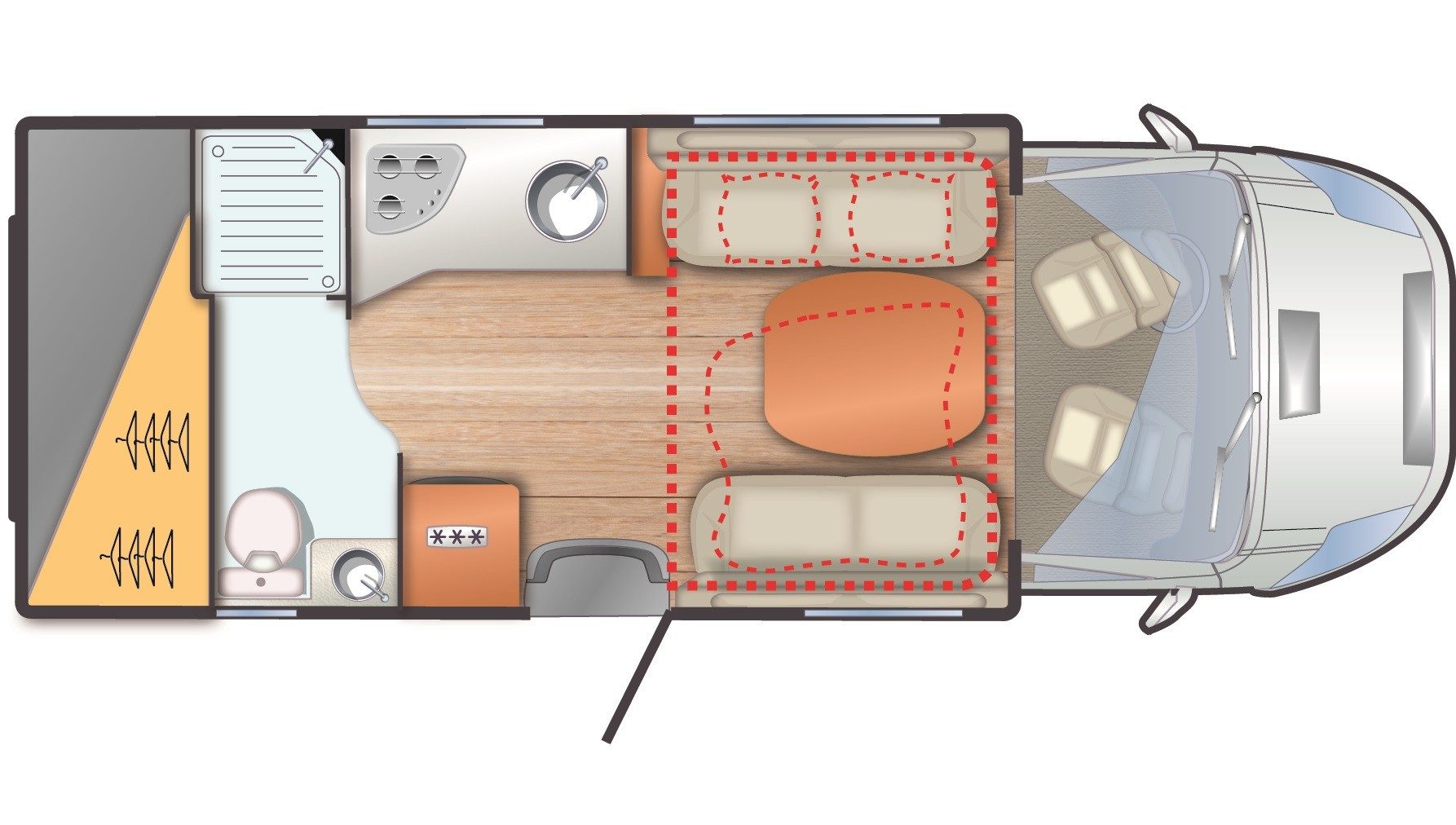 Les - : Absence d’éclairage dans la penderie // Confort du lit de dînette à améliorer // Quasi-obligation de choisir le pack Evasion // Boîte automatique en option.