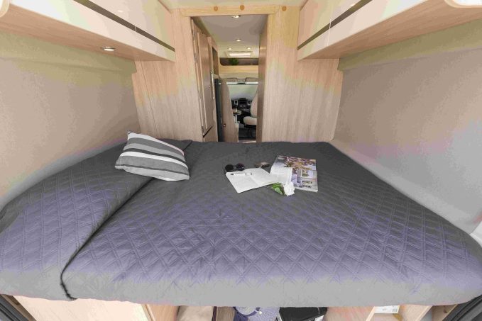 Pour ce qui est du couchage, il est sur soute avec un lit transversal de 192 x 132 cm. Le confort est assuré par un sommier à lattes et un matelas Bultex. C’est donc un fourgon avec de belles prestations que propose GiottiLine avec ce Van 60T. Son prix : 44 500 €. On regrettera seulement que le réfrigérateur soit à absorption et non à compression.