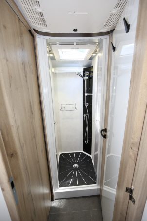 Le 7.9 Héritage étant un modèle grand luxe, il est logique qu’il soit bien pourvu en équipement. On retiendra ici le chauffage central Alde qui apporte une douce chaleur en plein hiver. Le réservoir des eaux usées est isolé et chauffé. La salle d’eau en deux compartiments apporte tout le confort auquel on aspire dans ce type de camping-car. La cuisine aussi est très bien fournie en rangements. Enfin, sous les lits jumeaux, se trouve un très grand garage accessible par deux portillons latéraux.