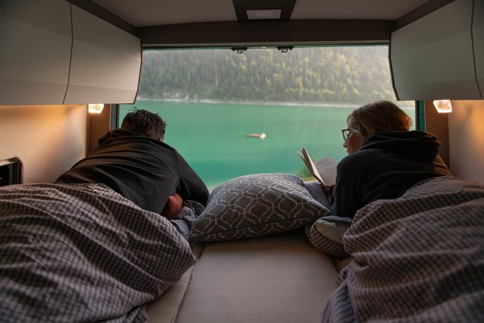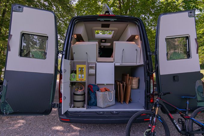 On appréciera l’immense capacité de rangement offerte par le Yucon 6.0. En effet, sous le lit de droite, un vaste volume autorise le stockage de chaises et table de camping. Le tout est facilement accessible en relevant la tête de lit. Nouveau cette année, ce modèle de fourgon est disponible en 4 roues motrices et motorisation 170 ch. Une version plus coûteuse de 12 854 €.