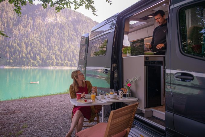 Le Yucon 6.0 est résolument haut de gamme. C’est aussi un strict deux places. En effet, la dînette est formée des deux sièges de cabine qui se retournent vers la table. Celle-ci est munie d’une rallonge pivotante. La cuisine n’est pas très grande, mais suffisante pour un usage en couple. La position du réfrigérateur permet d’y accéder de l’intérieur ou de l’extérieur.