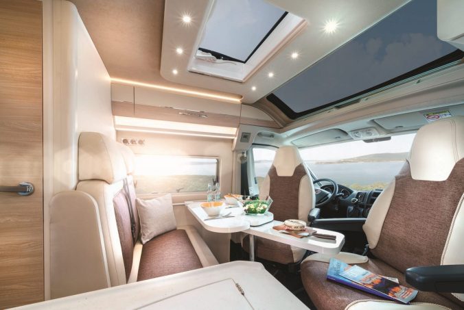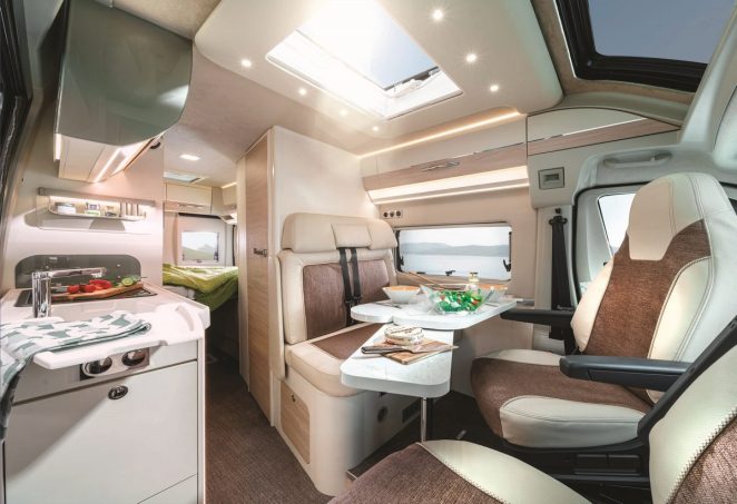 Eura Mobil se lance dans l’aménagement de fourgons en proposant trois modèles dont les plans correspondent aux tendances actuelles. Voici le Van 635 HB, qui reçoit un beau salon quatre places très lumineux grâce au sky roof de série. Les occupants s’y trouveront bien installés.
