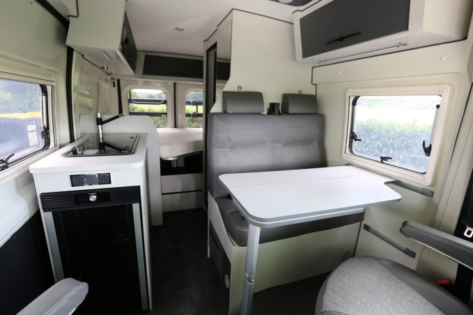 Son gabarit de 5,41 m a toujours séduit les adeptes de compacité, d’autant plus quand l’agencement a été quelque peu revu l’an passé, pour une optimisation accrue de l’habitacle. Cette saison, le Rando Van évolue grandement en matière de couchage et, de façon plus mesurée, dans la cuisine. En effet, cette dernière loge désormais un frigo en bout de meuble à l’entrée du véhicule. Ce positionnement en façade est idéal puisque le Rando Van nouvelle génération bénéficie d’un frigo à double ouverture de 70 l à compression.
